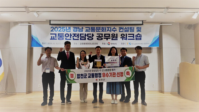 김윤철 합천군수는 “이번 경상남도지사 표창은 군민과 행정이 함께 만들어낸 소중한 성과로, 우리 군의 교통정책 방향성과 실행력을 모두 인정받은 결과”라며 “앞으로도 군민의 안전과 교통편의 증진을 위해 사람 중심의 교통환경을 지속적으로 조성해 나가겠다”고 밝혔다.