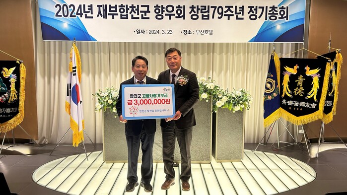 임현진 회장은 “내 고향 합천을 사랑하는 마음을 표현하고자 기부하게 됐다”며 “합천이 더욱 발전할 수 있도록 재부합천군향우회가 적극 응원하겠다”고 말했다.