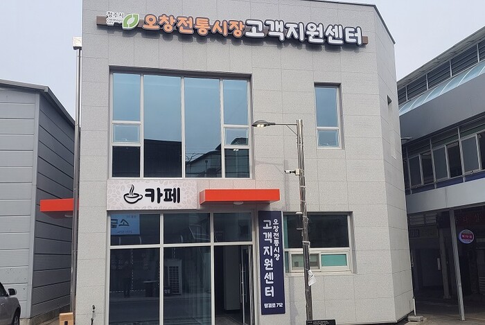 오창전통시장(청주시 청원구 오창읍 장대리 183) 고객지원센터는 2017년 전통시장 주차환경개선사업을 통해 36면(면적 842.6㎡)의 주차장과 함께 연면적 58.45㎡의 1층 건물로 조성됐지만, 휴게공간이 없고 사무실이 비좁아 활용성이 떨어진다는 불만이 있었다.