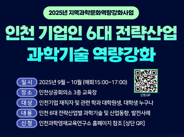 참가자들은 최신 산업기술의 발전 사례를 공유받을 뿐 아니라 기업 현장에서 적용 가능한 기술 활용법과 정책적 지원 방향까지 폭넓게 이해할 수 있다. 참가 신청은 인천대학교 과학영재교육연구소와 인천상공회의소를 통해 가능하다.