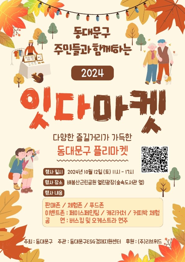 [시민일보 = 이대우 기자] 서울 동대문구(구청장 이필형)는 오는 12일 배봉산근린공원 열린광장에서 ‘2024 잇다마켓’을 개최한다.