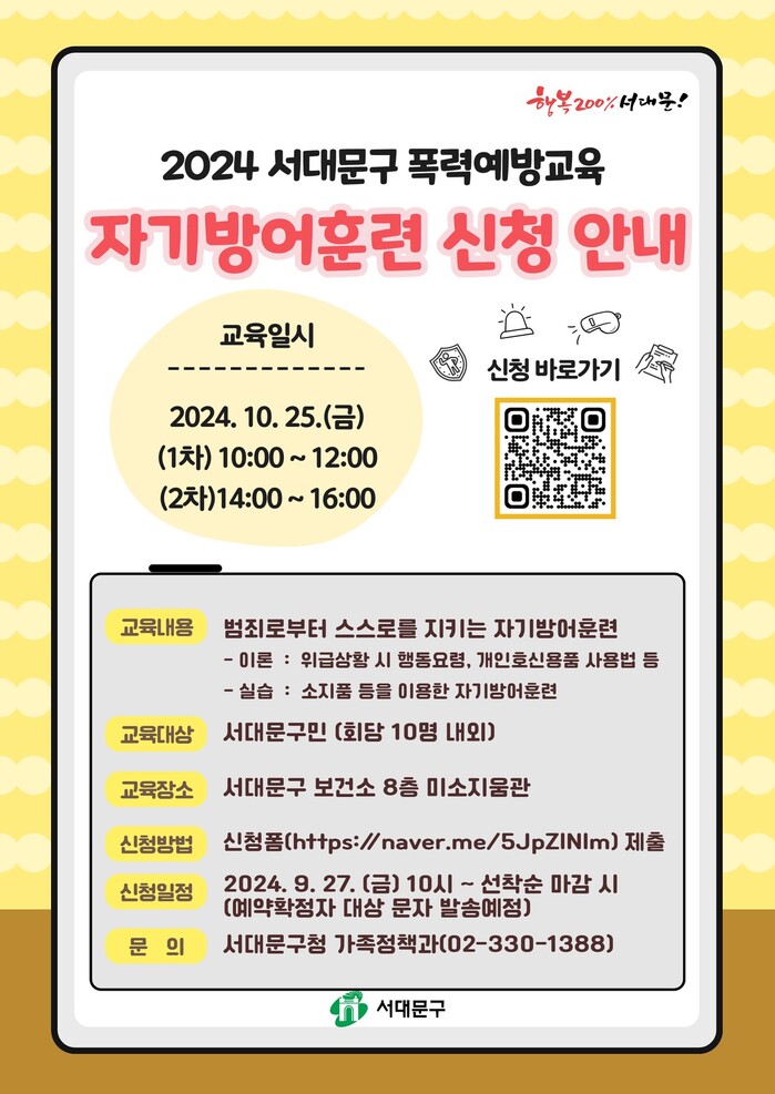 교육은 오전 10시∼낮 12시와 오후 2∼4시 서대문구보건소 8층 미소지움관에서 열린다. 각 시간대에 10명씩 모두 20명이 참여할 수 있다. 희망자는 서대문구청 홈페이지 공지사항을 참고해 신청하면 된다.