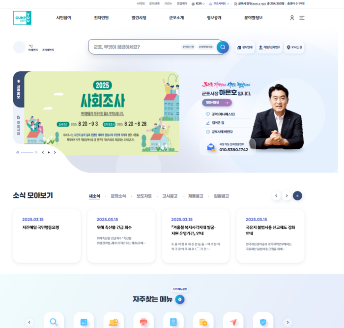 | ▲ 군포시 사용자 편의성 향상과 효율적인 정보 제공을 위해 시 홈페이지 메인 디자인 개편 화면 /사진제공=군포시 |