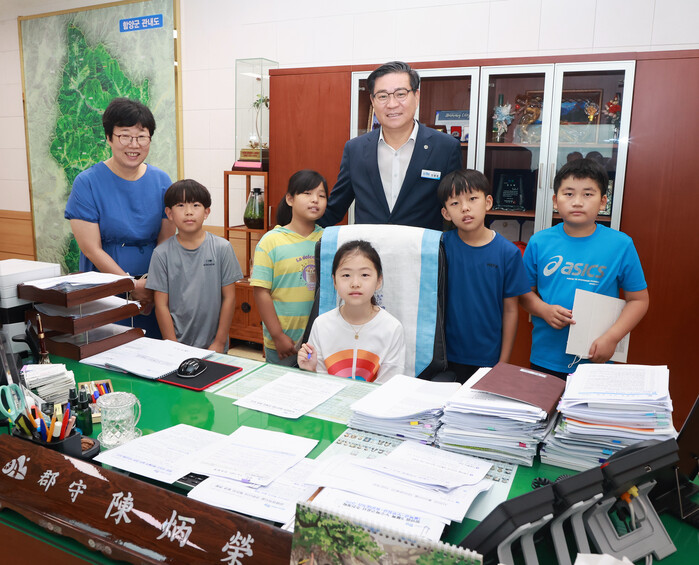 특히 학생들은 진병영 군수에게 제안하는 내용의 편지를 준비해 작은 영화관 설립부터 위천 주변 풀베기 건의, 읍 시가지에서 솔숲 자전거 길까지 연결 건의 등 실생활에서 위림초 학생들이 불편했던 내용에 관한 제안 내용을 전달하였고, 진병영 군수는 초등학생들의 눈높이에 맞게 친절하게 제안에 대한 답변을 하였다.