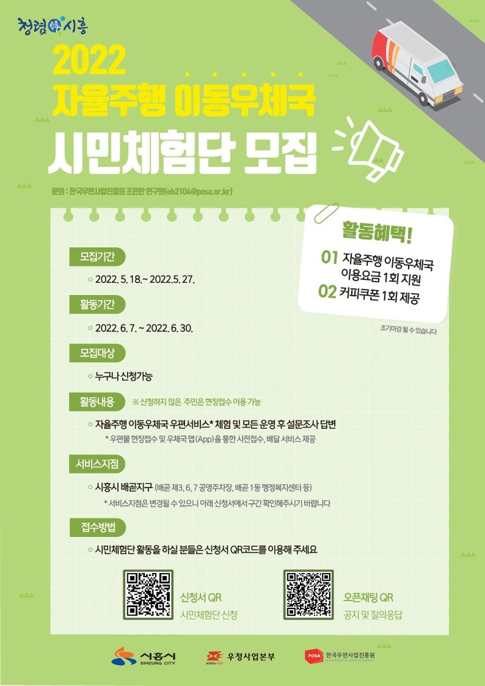 또한, 시민체험단에 한해 우체국 앱을 통한 사전 접수가 가능하고, 1인 1회 커피 쿠폰 및 우편 이용 요금이 지원된다.