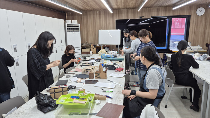 | ▲ 가죽공예 교육 모습. (사진=성동구청 제공) |