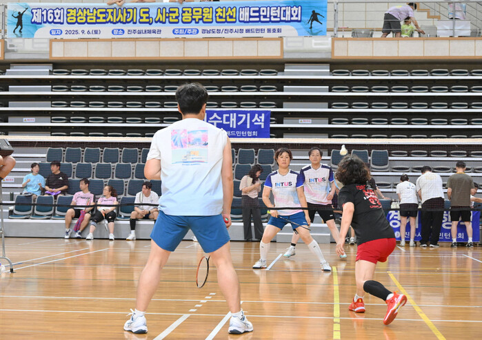 진주시는 지난 6일 진주실내체육관에서‘제16회 경남도지사배 공무원 친선 배드민턴 대회’를 성황리에 개최하고, 개최지로서 종합우승을 차지하는 쾌거를 이뤘다고 밝혔다.