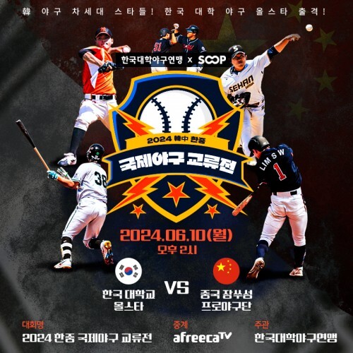 [창녕=최성일 기자] 창녕군(군수 성낙인)은 한국 대학 올스타와 중국 장쑤성 프로야구단(장쑤 휴즈홀스)이 대결을 펼치는 ‘2024 한중 국제야구 교류전’이 이달 10∼11일까지 2일간, 창녕스포츠파크 야구장에서 열린다고 밝혔다.