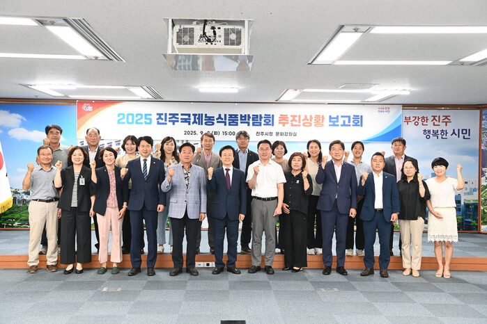 진주시는 2일 시청 3층 문화강좌실에서 조규일 진주시장과 진주국제농식품박람회 자문위원 등이 참석한 가운데 ‘2025 진주국제농식품박람회’ 추진상황 점검 보고회를 가졌다.