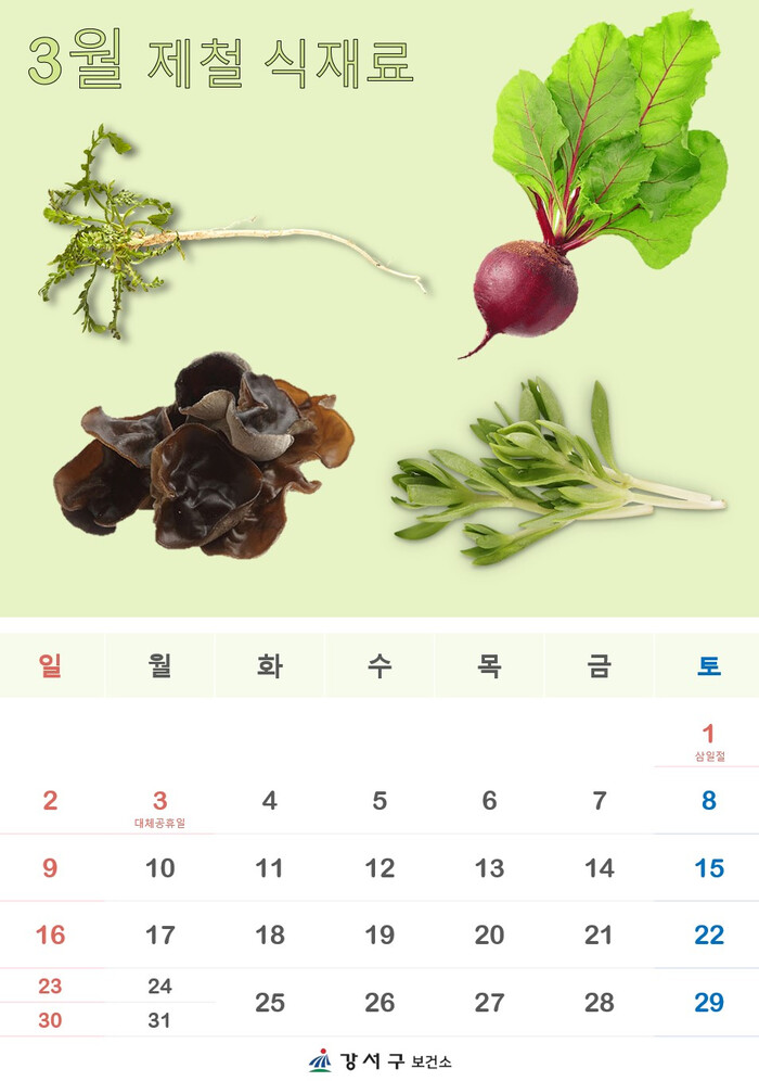 | ▲ 제철 식재료 달력(3월). (사진=강서구청 제공) |