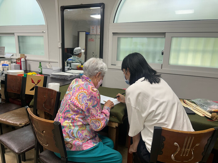 | ▲ 안산시 단원보건소 관내 60세 이상 어르신 대상 ‘찾아가는 이동 치매 조기검진 진행 모습 /사진제공=안산시 |