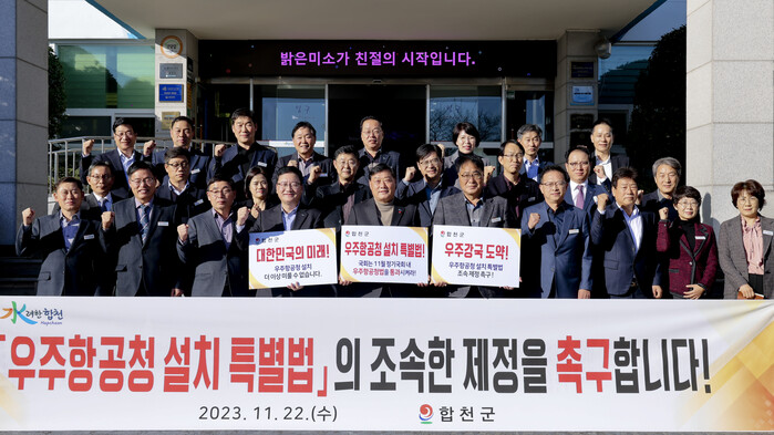 김윤철 군수는 “본격화되는 우주항공 경쟁 시대에 산업·안보·국제협력 등을 아우르는 우주항공청을 조속히 설립해 국가 핵심 경쟁력을 확보하고 미래세대 준비를 해야 될 것”이라며 “경남 발전뿐만 아니라 국가경쟁력 확보를 위해 하루 빨리 특별법이 제정되길 바란다”고 말했다.