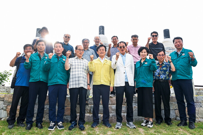 조규일 진주시장은 1일 김법환 진주문화사랑모임 이사장을 비롯한 진주시의회 의원, 진주문화사랑모임 회원 등 20여 명과 함께 진주 ‘망진산 봉수대’를 방문해 복원완료 현장을 점검하고, 역사적 가치 계승과 문화유산 보존 의미를 되새겼다.