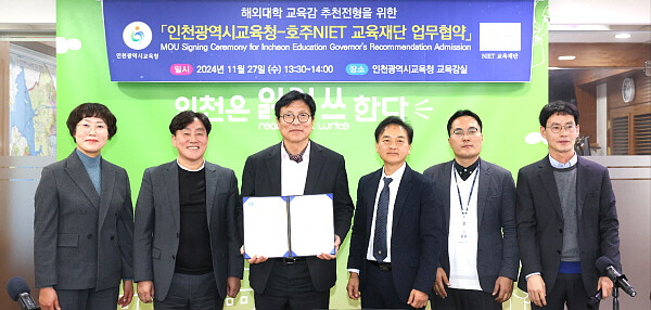 [인천=김형만 기자] 인천시교육청은 11월27일 호주 NIET 교육재단과 해외대학 교육감 추천 전형을 위한 업무협약을 체결했다고 밝혔다.