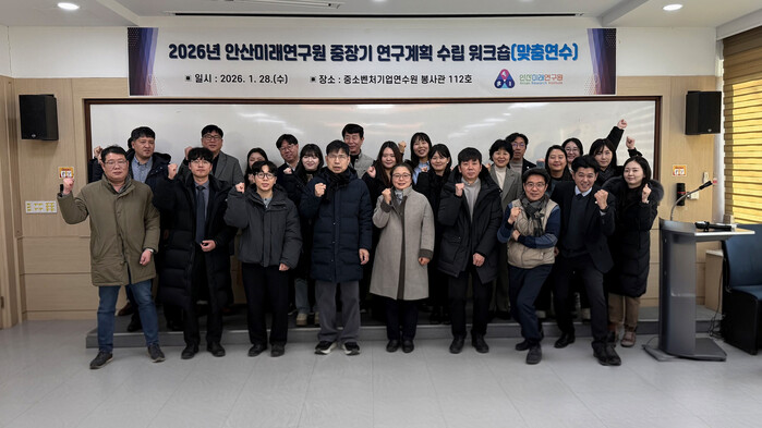 이날 워크숍에는 안산미래연구원 전 직원과 안산시 관계자 등 약 30명이 참석했으며, 도시계획, 문화·관광, 환경, 에너지, 사회복지, 산업경제, 교통, 도시행정 등 8개 연구 분야별 연구 성과와 2026년 단기 연구계획, 향후 중장기 연구 방향에 대한 발표와 토론이 진행됐다.