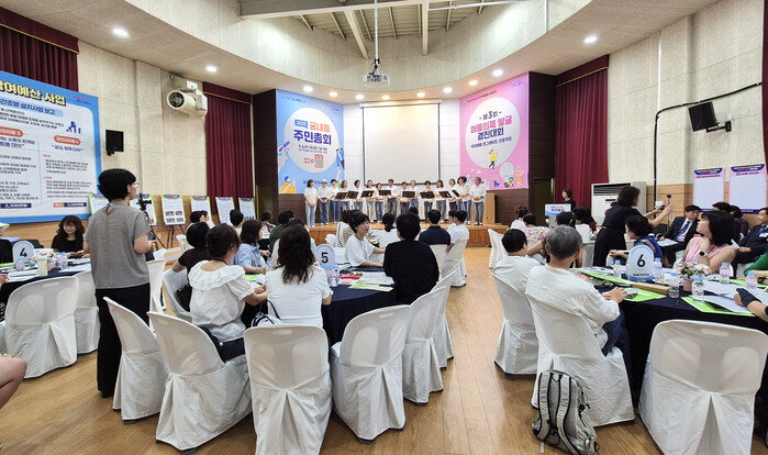 | ▲ 군포시 궁내동 주민자치회는 9월 6일 군포시 평생학습마을 대강당에서 ‘2025년 궁내동 주민총회’에서 참석자들이 궁내동 주민자치회에서 마련한 프로그램을관람하고 있다 /사진제공=군포시 |