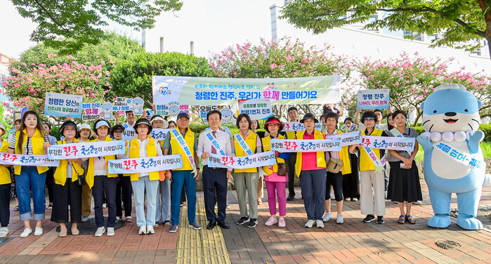 이번 캠페인은 조규일 진주시장과 감사관 직원, 상대동 통장을 포함한 지역주민 등 40여 명이 참여한 가운데 지역사회 청렴 문화 확산을 위해 마련됐다.