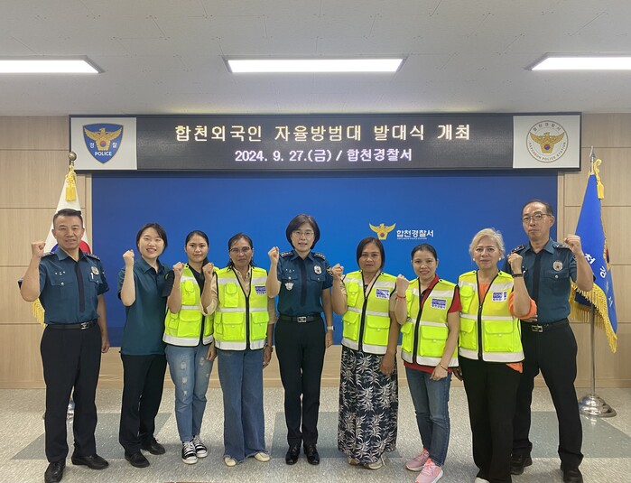 합천외국인 자율방범대는 필리핀, 베트남 등 10명으로 구성되었으며, 범죄취약지·다중밀집구역 안전순찰 및 체류 외국인 인권보호 등 안전한 지역사회 조성을 위해 경찰과 협력치안을 유지할 것을 결의하고, 발대식이 끝난 후 합천 대야문화제와 주민박람회 행사장 중심으로 범죄예방 합동순찰도 진행했다.