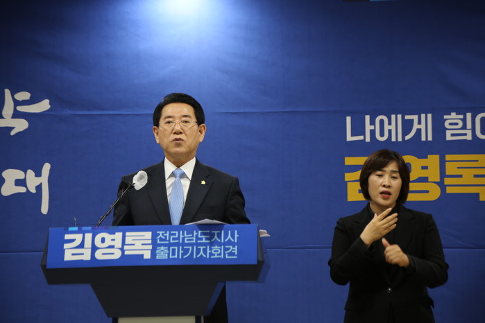 [남악=황승순 기자] 김영록 도지사는 지난 25일 전남도의회 브리핑룸에서 발표한 전남도지사 선거출마 기자회견에서 공식출마를 선언했다.