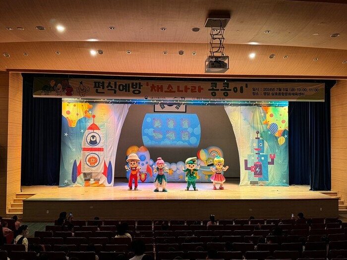 | ▲ 영암군, 지난 5일 삼호읍 소재 삼호종합문화체육센터에서 관내 어린이 600여 명 대상 인형극 '채소나라 콩콩이' .상연 / 영암군 제공 |
