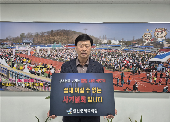 [합천=이영수 기자] 유달형 합천군체육회장은 청소년 도박 확산 방지 및 근절을 위한 ‘청소년 사이버도박 근절 챌린지’에 참여했다.