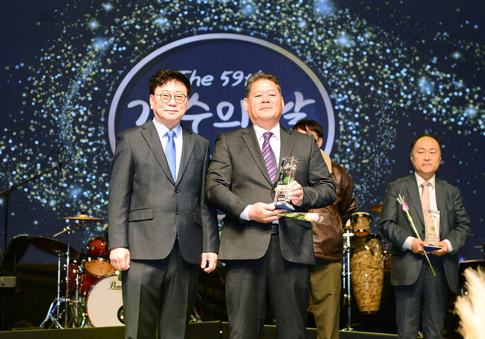 | ▲ 손영욱 더파워뉴스 기자가 가수들이 선정한 '2025 올해의 기자상'을 수상했다.(사진=한국가수협회) |