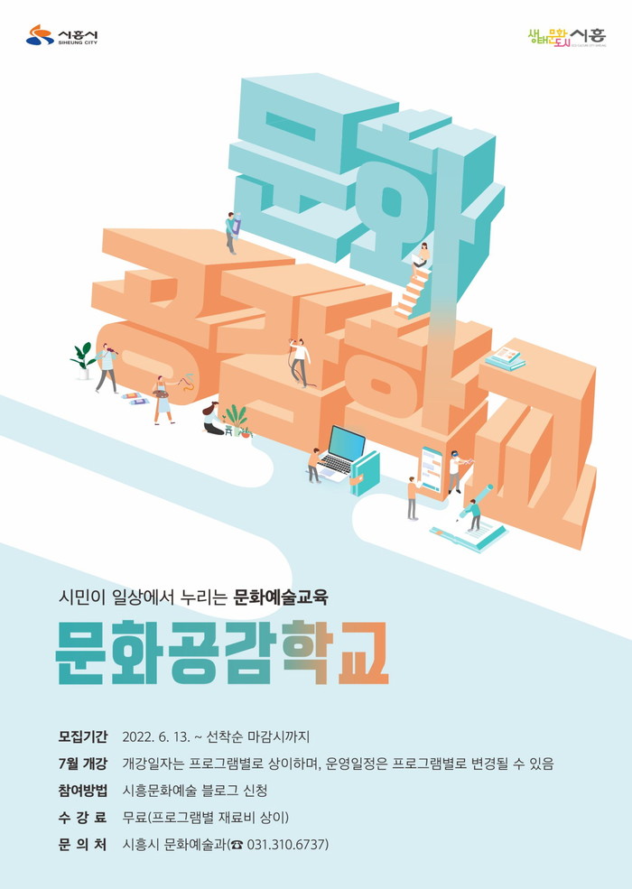 이번 문화예술교육 프로그램에 대한 자세한 내용을 알고 싶거나 참여를 희망하는 시민들은 시흥문화예술 블로그(https://blog.naver.com/csiheung)에서 확인하거나 시흥시청 문화예술과 문화공감팀으로 문의하면 된다.