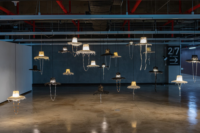 이번 전시에서는 먹염을 한 한지와 가죽, 닥피를 활용해 한 땀 한 땀 완성한 모자, 가방 등의 작품부터 전통 갓을 형상화한 한지 조명 작품까지 신작 15점을 포함해 총 30점의 대표작으로 관람객을 만난다. 30일(토)에는 전시 연계 프로그램으로 ‘청주행복교육지구 마을 속 특색 프로그램 지원사업 - 권정구와 베르디아니 앙상블 공연’도 전시공간에서 진행한다.