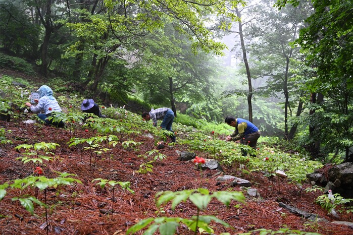 시범단지 내 산양삼은 매년 기간제근로자 10여명을 채용하여 토양관리에서부터 파종, 풀베기 등 철저한 비배관리로 우량 산양삼 생산을 위해 집중적인 관리를 하고 있다.
