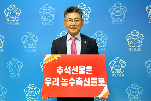 [칠곡=박병상 기자]경북 칠곡군의회 심청보 의장은 지난 4일 침체된 경기와 굳은 날씨 등으로 어려움을 겪고 있는 농어민들을 위해 "추석선물은 우리 농수축산물로” 챌린지에 동참했다.