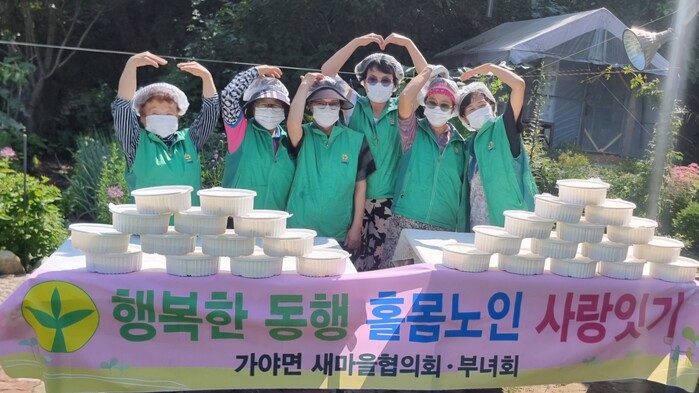 이날 가야면 새마을협의회·부녀회 회원 10명은 무더위와 장마가 이어지는 여름을 맞아 홀몸 어르신 32가구에 삼계탕을 직접 조리하고 포장해 전달했다.