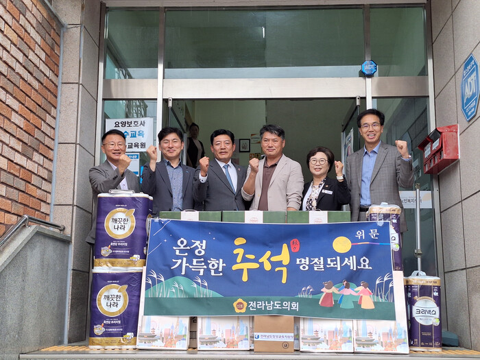 | ▲ 정철_의원_추석_명절_맞아_‘노인복지시설’_위문(사진=전남도 의회) |