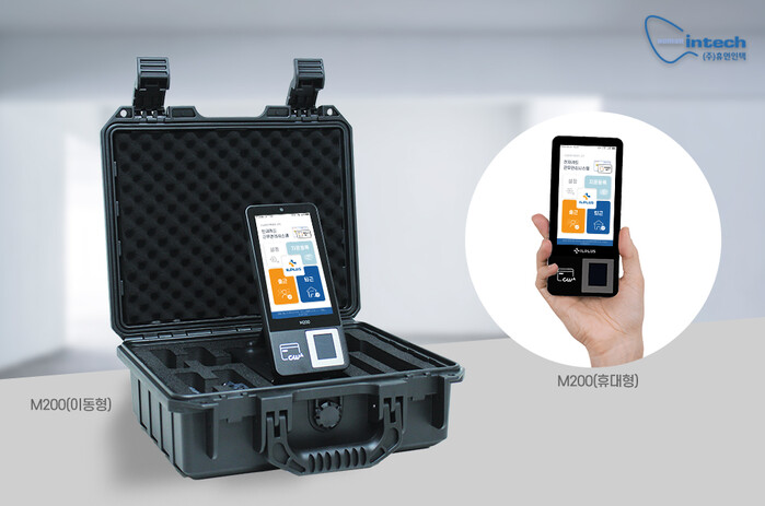 올해 처음 선보이는 휴먼인텍의 초경량 근태단말기인 M200(이동형)모델은 전기 공급이 원활하지 않은 야외 현장 등 맞게 영하 5도 ~ 영상 50도 환경에서도 사용이 가능하다. 한 손에 들어오는 그립감과 직관적인 5인치 IPS LCD(해상도 720X1280)의 화면에 정전 터치 스크린 키패드, 지문센서 등으로 편리한 휴대성을 가졌다.