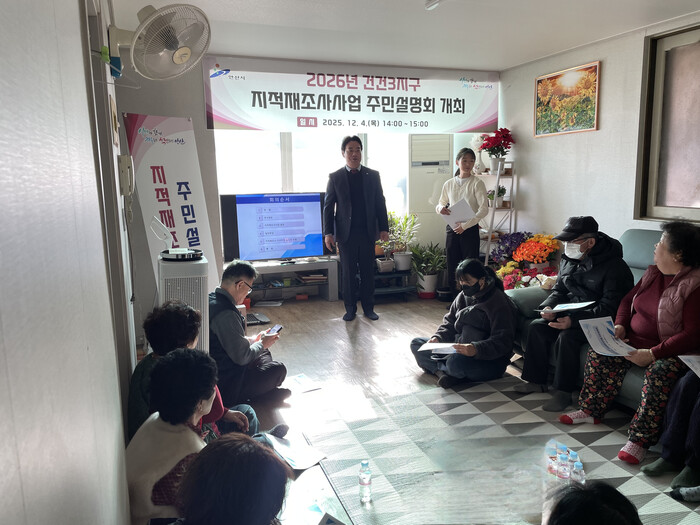 | ▲ 안산시 상록구는 지난 4일 건건3지구에서 2026년 지적재조사사업 주민설명회를 하고 있다 /사진제공=안산시 |