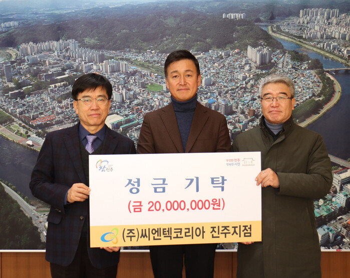 ㈜씨엔텍코리아(대표 김영연, 제정열)는 20일 어려움을 겪고 있는 관내 취약계층 저소득가구를 돕는데 사용해 달라며 성금 2,000만 원을 진주시복지재단(이사장 이성갑)에 기부했다.
