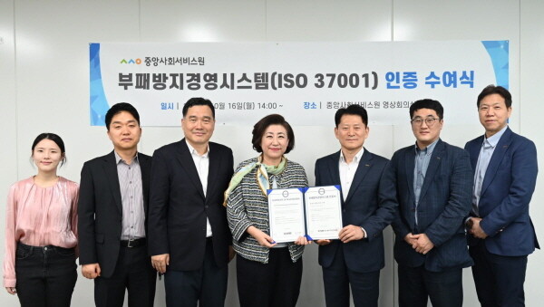 중앙사회서비스원이 이번에 획득한 ISO 37001 인증은 국제표준화기구(ISO)에서 정식으로 채택한 표준인증으로 전 세계의 기업·기관 및 기타 이해 관계자가 설계해 기업·기관의 부패 위험을 예방하고 뇌물 수수 예방 및 탐지 등을 처리하기 위한 인증 분야다.