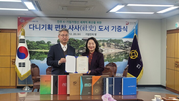 이날 기증식에 참석한 신종우 진주부시장은 “오랜 기간 ‘기업사’ 편찬의 외길을 걸어온 ‘사사(社史) 편찬 전문회사’로서의 전문성과 역량을 보유한 다니기획이 대한민국 기업가정신을 미래세대로 계승하기 위해 진주시가 추진하고 있는 여러 가지 사업에 힘을 더해줄 것”을 당부했다.