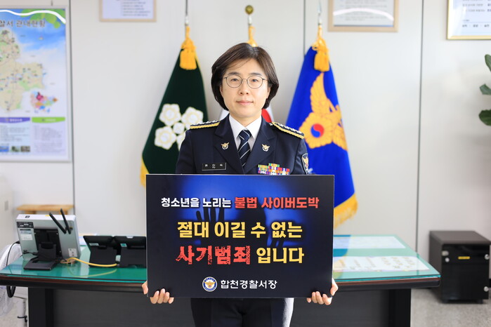 유미숙 합천경찰서장은 “겨울 방학을 맞이한 청소년들이 혼자있는 시간이 많아짐에 따라 호기심으로 사이버도박에 빠져들 가능성이 높고 학교폭력 등 2차 범죄로 이어질 수도 있다. 이는 청소년 개인을 넘어 가정과 사회에 큰 영향을 미치는 만큼 반드시 근절하여 청소년들이 건강하게 성장할 수 있는 안전한 환경이 조성될 수 있도록 노력하겠다”고 뜻을 밝혔다.