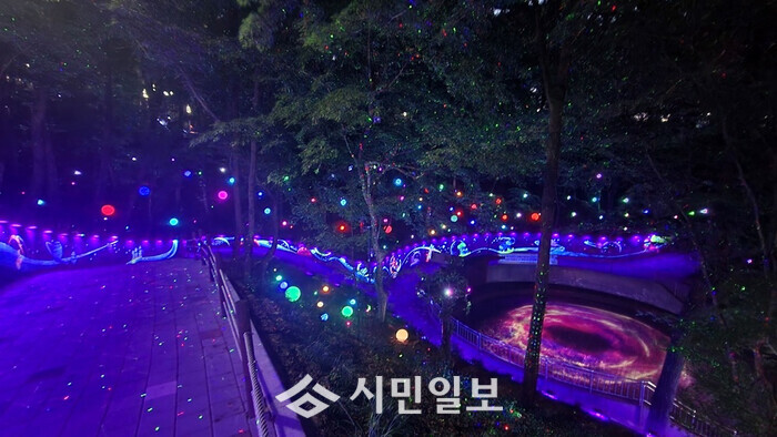 전망대에서 이어지는 ‘사직 빛의 숲’은 사직공원 내 산책로 830m 구간을 다양한 미디어아트 작품으로 꾸민 미디어아트 기반 야간 콘텐츠다. ‘사람들의 소원이 은하수가 돼 내려온다’는 콘셉트로 구성돼 자연 속 감성 체험과 예술적 몰입감을 함께 제공한다.