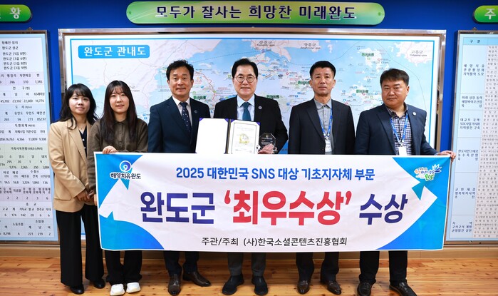 [완도=김현종 기자]완도군이 지난 16일 열린 ‘제15회 2025 대한민국 SNS 대상’ 시상식에서 지난해에 이어 기초 지자체 부문 2년 연속 ‘최우수상’ 수상의 영예를 안았다.