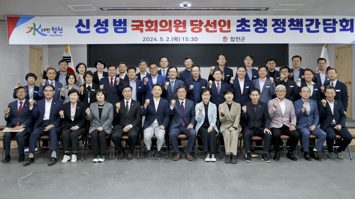 이에 신성범 국회의원 당선인은 “22대 국회에서 서부경남의 발전을 위해 노력하겠다.”며, “특히 합천군의 현안사업이 원활히 추진될 수 있도록 중앙부처에 사업 필요성을 논리적으로 설명하고 앞으로도 합천군과 지역 현안사업을 지속적으로 협의하고 논의하겠다.”고 말했다.