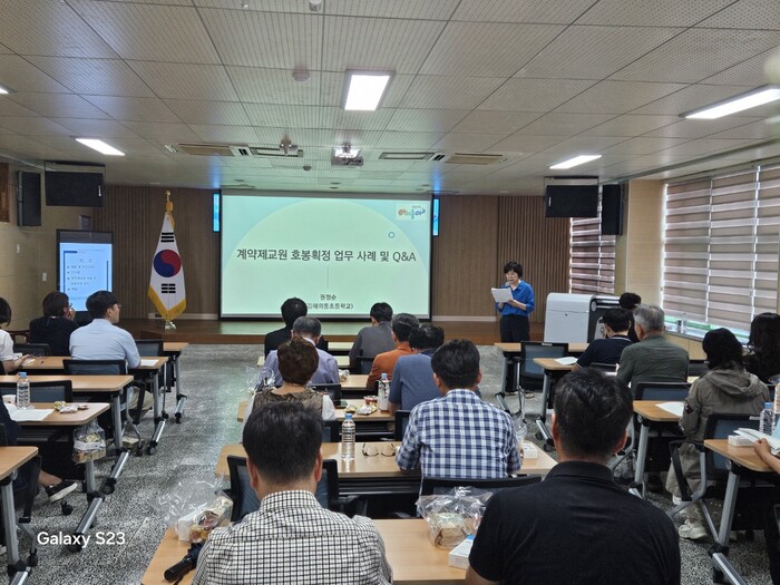 김갑진 교육장은 “학교 행정업무에 고생하시는 교감선생님 등 업무 담당자들의 노고에 감사드리며, 교육지원청은 계약제 교원 채용 및 호봉획정 등 학교 행정업무 등에 대한 지원을 점차 확대함으로써 선생님들이 학생 곁으로 다가갈 수 있는 최상의 교육 여건을 조성하는 데 최선을 다할 것”이라고 말했다.