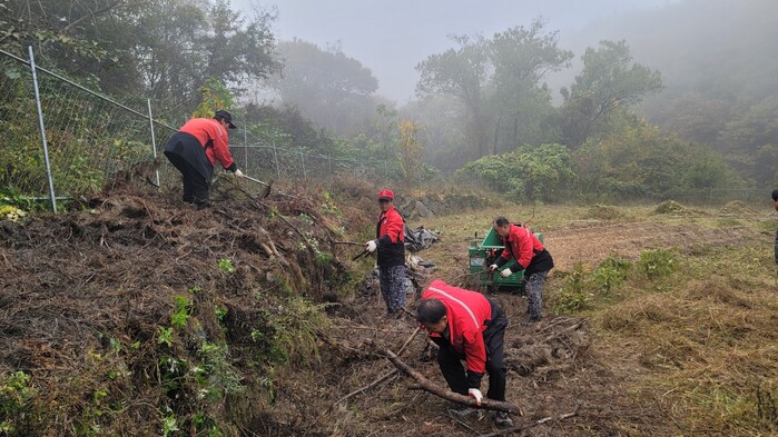 이날 산림과 연접한 황정마을 농가에서 적중면 산불감시원 파쇄팀은 방치된 잔가지 및 영농부산물 2톤을 수거해 파쇄하고 마을방송을 통해 불법소각 금지 및 파쇄기 운영 홍보를 실시했다.