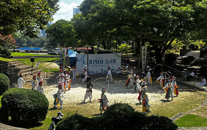 이날 진주성에는 오전 10시 수성중군영 교대의식을 시작으로, 오전 11시부터 솟대쟁이놀이 공연이 이어지며 사적지를 찾은 방문객들에게 특별한 즐거움을 주었다. 특히 솟대쟁이놀이의 아슬아슬한 기예와 출연진의 재치 있는 입담, 생동감 넘치는 퍼포먼스는 관람객들의 시선을 사로잡으며 추석 연휴를 더욱 풍성하게 만들었다.