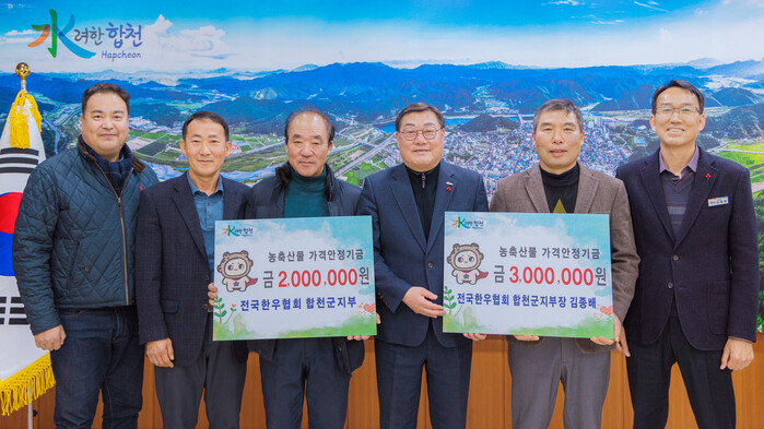 김윤철 합천군수는 "농축산물 가격안정기금을 기탁해 주신 김종배 지부장님과 회원분들께 깊이 감사드리며, 한우산업 발전을 위해 지속적으로 지원하겠다"고 밝혔다.