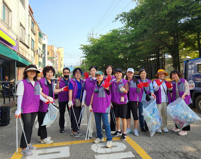 | ▲ 안산시 단원구 와동 행정복지센터는 지난 23일 통장협의회 통장 70여명이 모여 깨끗하고 쾌적한 마을환경을 조성하기 위해 안산사랑 대청소를 했다 /사진제공=안산시 |