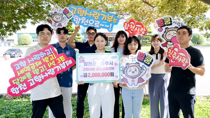 26일, 합천군과 진주시의 직원 각각 20명이 상호 교차 기부를 통해 각 지자체에 200만 원씩 기부하며 지역 상생과 발전을 응원했다. 이로써 두 지역 간의 긴밀한 협력과 우호 관계가 한층 더 강화될 것으로 기대된다.