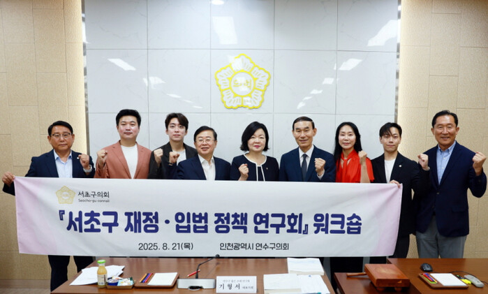 연수구의회는 21일 회의실에서 서울 서초구의회 의원 연구단체 ‘서초구 재정 입법 정책 연구회’(대표 의원 박미정) 방문단을 맞아 간담회를 개최, 지방의회 입법 정책 사례를 공유했다고 밝혔다.