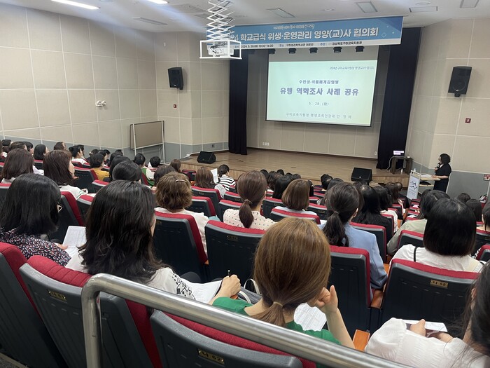 [구미=박병상 기자] 경상북도구미교육지원청(교육장 남성관)은 지난 지난 28일(화) 구미성리학역사관 야은관강당에서 관내 각급학교, 교육지원청 영양(교)사 100여명을 대상으로 학교급식 위생·운영 관리 협의회를 개최했다.
