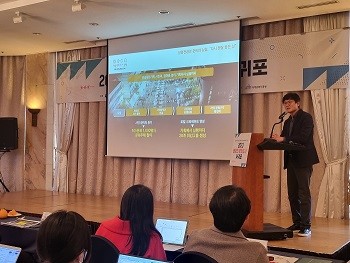 | ▲ 장병수 밀양시문화도시센터장이 밀양시 문화도시 조성사업의 주요성과를 발표하고 있다. (사진=밀양시청 제공) |